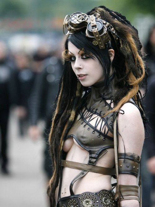 A participant in an annual Wave-Gothic festival poses on May 30, 2009 in Leipzig, eastern Germany, where more than 20 000 people are expected to attend the festival attracting the friends of gothic romanticism. The festival offers a very special spectacle with a range of concerts, historical markets, theatre and cinema, gothic scene performances, exhibitions, readings and parties. AFP PHOTO DDP/SEBASTIAN WILLNOW GERMANY OUT (Photo credit should read SEBASTIAN WILLNOW/AFP/Getty Images)