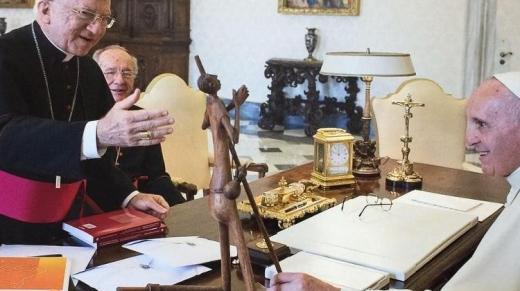 Papa recebe obra de Marcos Sertânia no Vaticano, entregue por um arcebispo da igreja católica